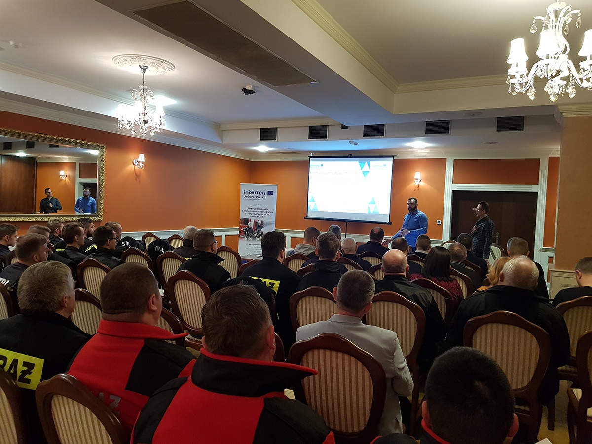 With many invited guests was Mer Pagegiai – Mr. Vaidas Bendaravičius with a 15-person delegation of employees and firemen of the Commune. During the conference goals and assumed results and project indicators have been presented that have a direct impact on raising the level of security of local communities. In addition, the representatives of Beneficiaries, Mr. Wojciech Cybulski – Mayor of Dobrzyniewo Duże commune, Ričardas Bartkevičius – Head of the Municipal Fire Service Pagegiai and Mayor of Zabludow Commune – Adam Tomanek, had the opportunity to present their Municipalities as well as the impact of the project on increasing the safety of residents.